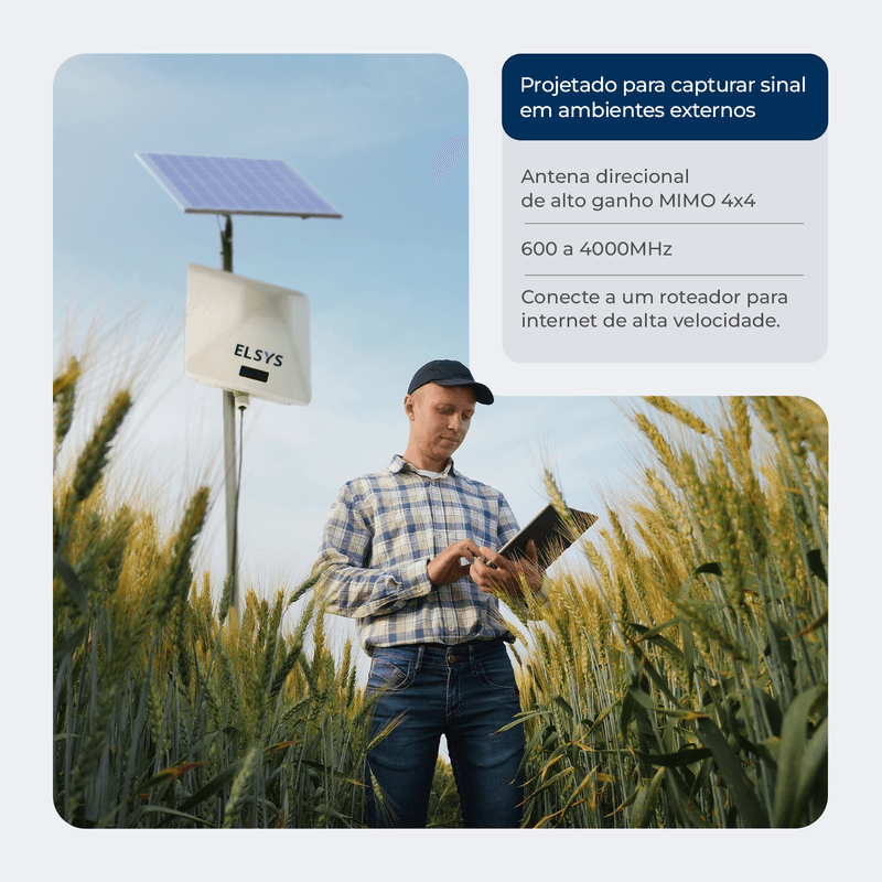 Ele funciona em ambientes urbanos e rurais, sendo ideal para locais com sinal fraco ou onde a fibra não chega.