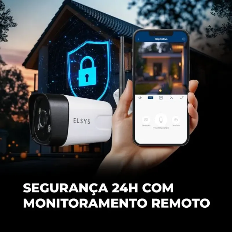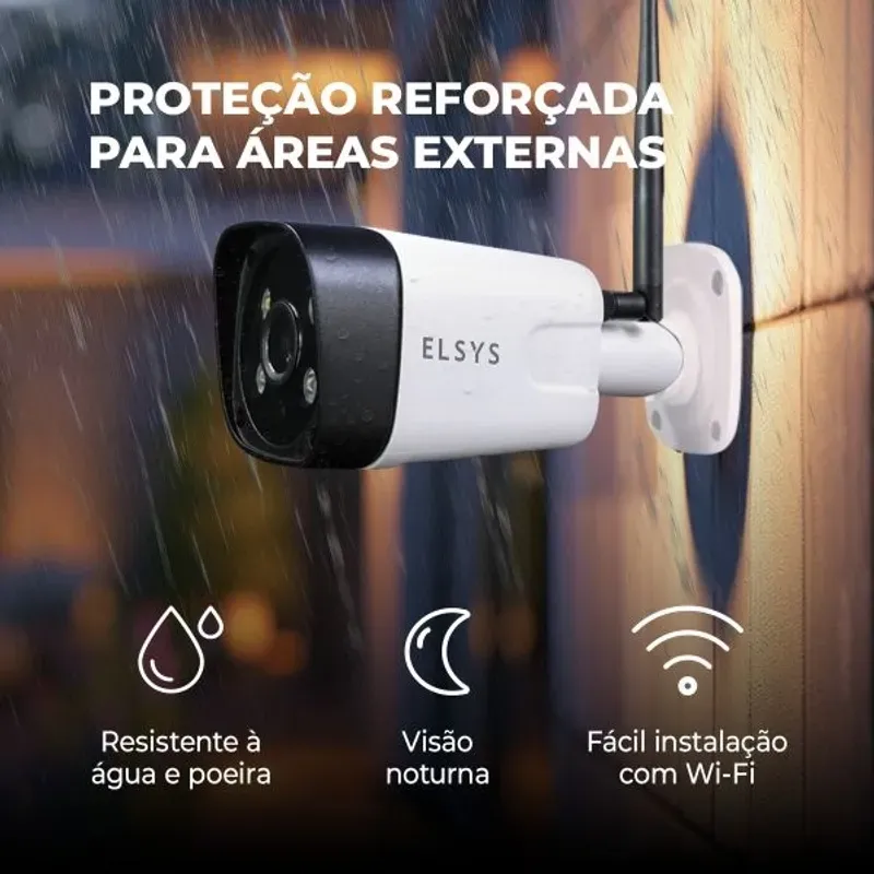 Para o monitoramento externo de residências ou vigilância patrimonial foi desenvolvida a câmera externa fixa Wi-Fi ELSYS. O produto possui funções que auxiliam na segurança como alerta de movimento, microfone, compatibilidade com DVR/NVR e visão noturna.