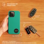 O acesso é liberado por meio de biometria, controle remoto, senhas numéricas, aplicativo Elsys Casa+, tag adesiva e tag chaveiro.